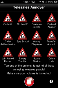 Our first one has just been released on the iTunes App Store, called Telesales Annoyer, and is designed to help you get your own back on all those unwanted irritating telesales callers who can’t take a hint! Compatible with all iPhones, iPod Touch (with speaker) and iPad.